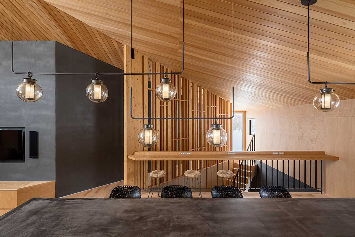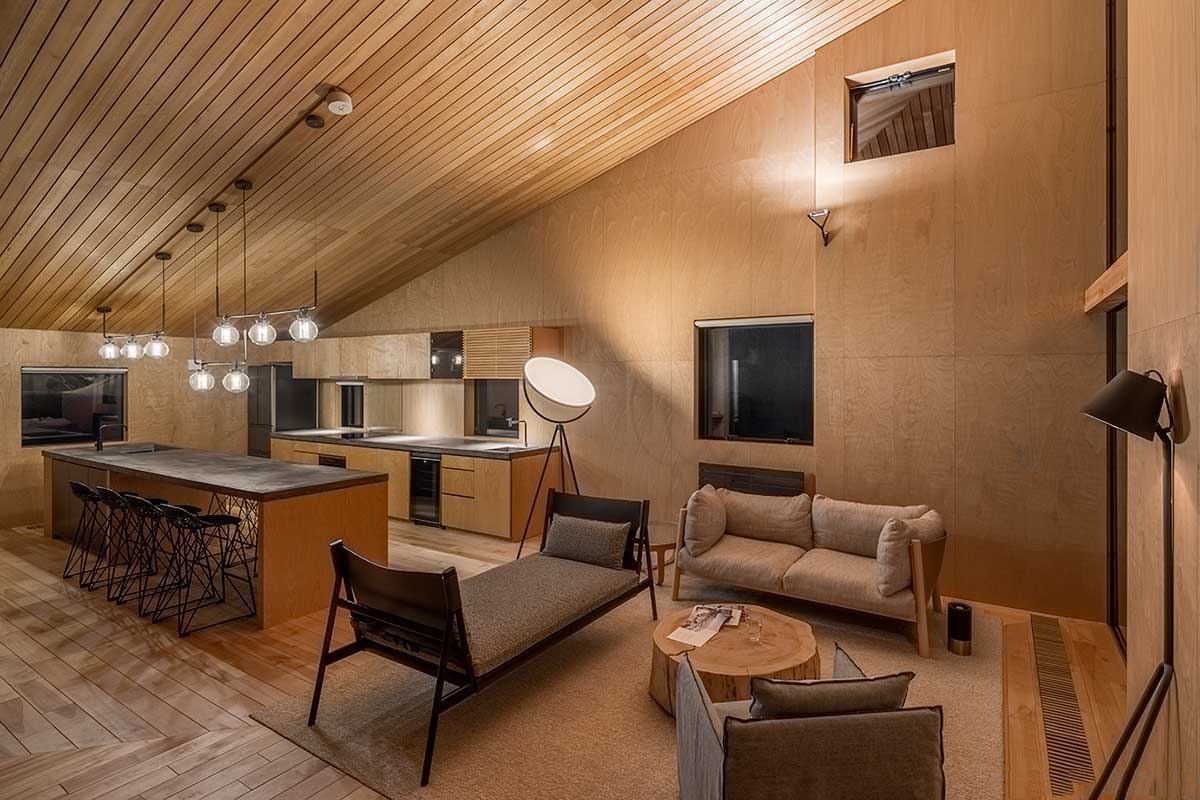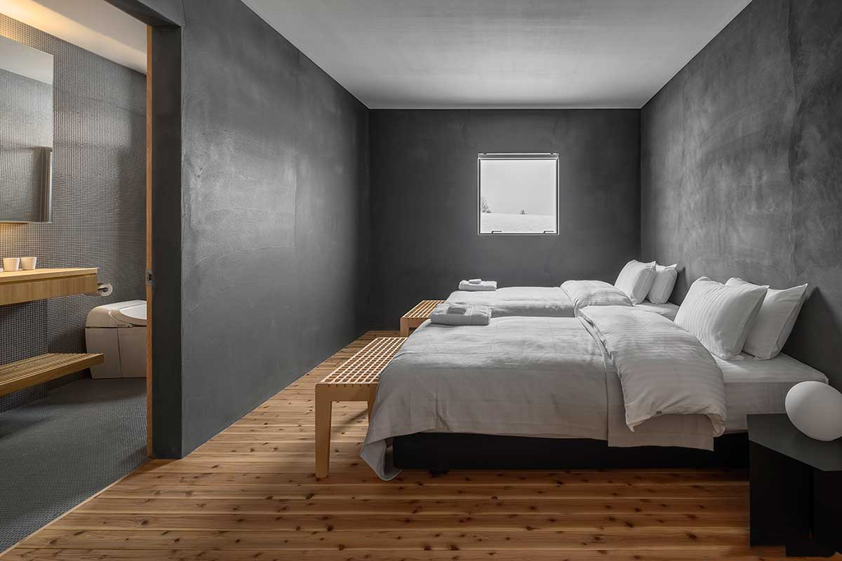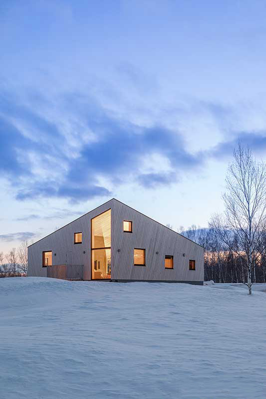 FOXWOOD Plot-E 建築所在地:ニセコ町東山構造・規模:木造2階建敷地面積:456.77㎡延床面積:172.31㎡竣工年月:2017.1主要用途:ホテル設計事務所:SAAD/建築設計事務所写真撮影:益永研司