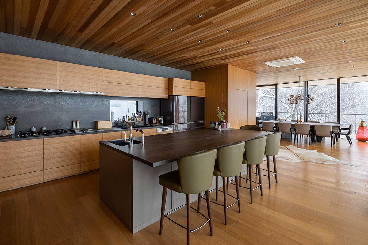 ユキカゲ 建築所在地:倶知安町字山田構造・規模:RC造地下1階地上2階建敷地面積:1183.97㎡延床面積:438.85㎡竣工年月:2016.12主要用途:住宅設計事務所:SAAD/建築設計事務所写真撮影:益永研司