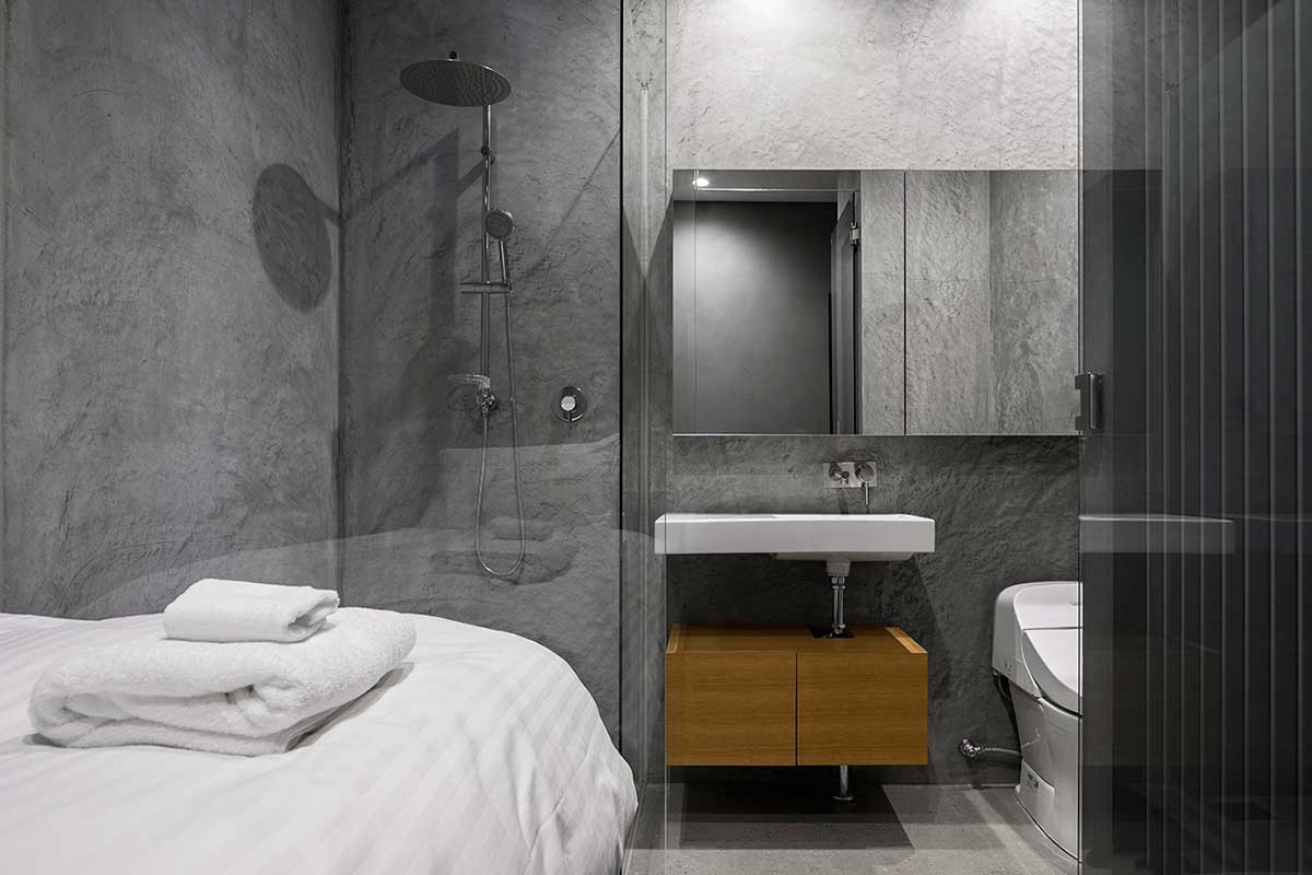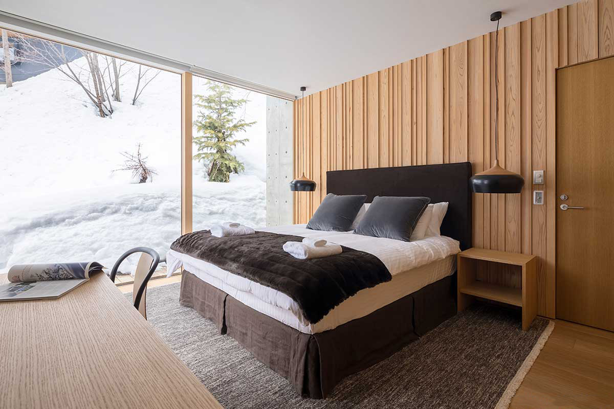 キタドリ 建築所在地:倶知安町山田構造・規模:RC造地下1階地上2階建敷地面積:1053.70㎡延床面積:333.18㎡竣工年月:2016.10主要用途:ホテル設計事務所:SAAD/建築設計事務所写真撮影:益永研司